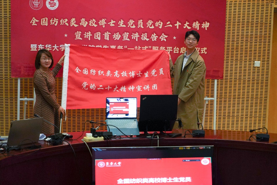李佳耀在致辞中向积极支持、共同参与宣讲团组建的兄弟高校和学院表示诚挚感谢。他提到,理论宣讲是打通党的创新理论传播“最后一公里”的重要渠道,成立全国纺织类高校博士生党员党的二十大精神宣讲团是深入学习宣传贯彻党的二十大精神的重要举措,也是纺织类高校之间加强交流、促进合作、共同提升的重要纽带,希望能够通过进一步的交流合作,共同探索培养新时代纺织拔尖创新人才的有益实践。