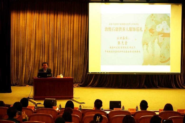 活动中,敦煌研究院前副院长、中国敦煌吐鲁番学会常务理事张先堂教授作《敦煌石窟供养人服饰巡礼》专题讲座,从专业角度深度解读敦煌壁画中的供养人图像,带领师生感受跨越千年的国风之美。