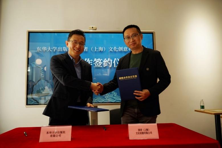 陈珂、蔡志文分别代表出版社和读者书店签订战略合作协议。双方将充分发挥自身特色优势,在大众阅读、学术交流、教育培训、文化传播、融合出版、文创开发等多方面强强联合,为高校专业师生和大众读者提供中华传统文化研学和交流平台。