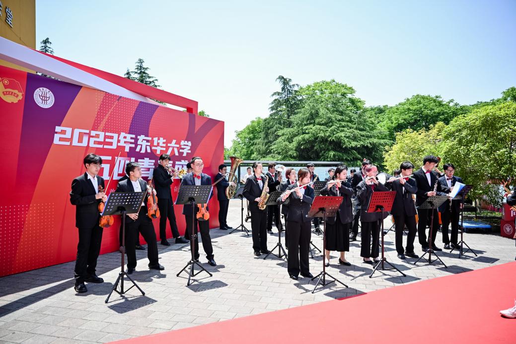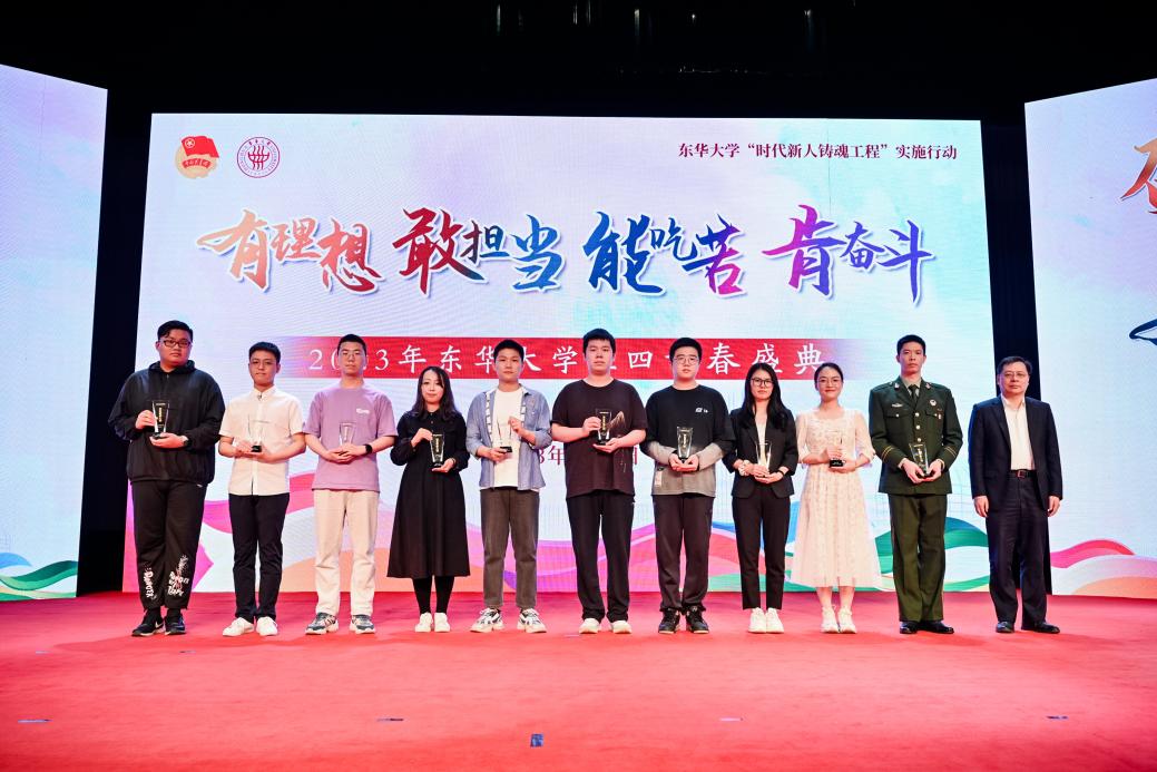 活动当天,校团委组织开展“青春的答案——2023年五四青年节主题升旗仪式”和“艺术与我”艺术团快闪表演,吸引了大批师生参与。啦啦操队带来活力四射的表演《放飞梦想》,校园十大歌手代表演唱歌曲《有我》,激励师生传承五四精神,勇担时代使命。锦绣会堂场外还设置了榜样青年故事长廊和“东华棒棒堂”故事盲盒,生动可感的榜样故事引发师生驻足。
