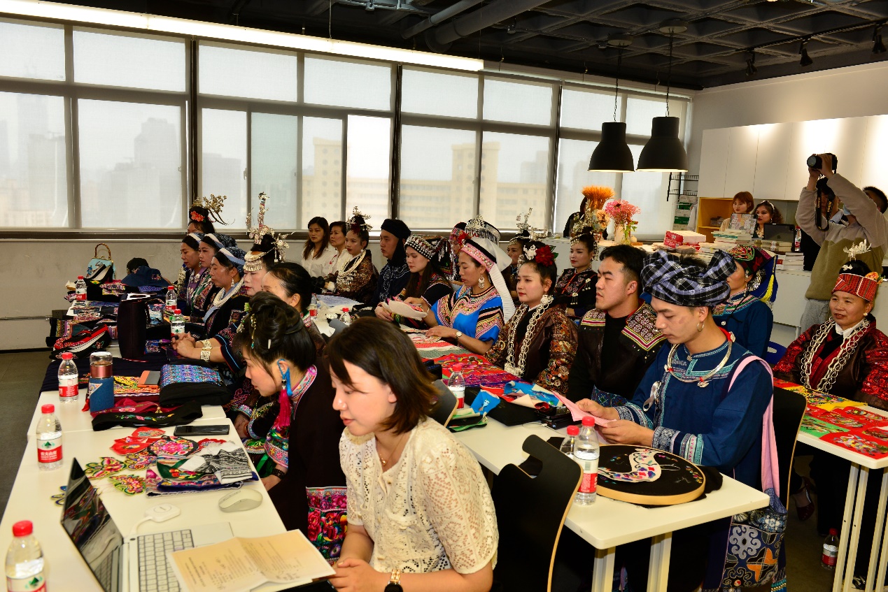 据非遗教研中心教学指导张顺爱老师介绍,本次研修班的学员是来自贵州的22名刺绣相关从业者和传承人,包含了8个民族7种民族刺绣,希望大家在设计中将自己民族的特色展现出来。